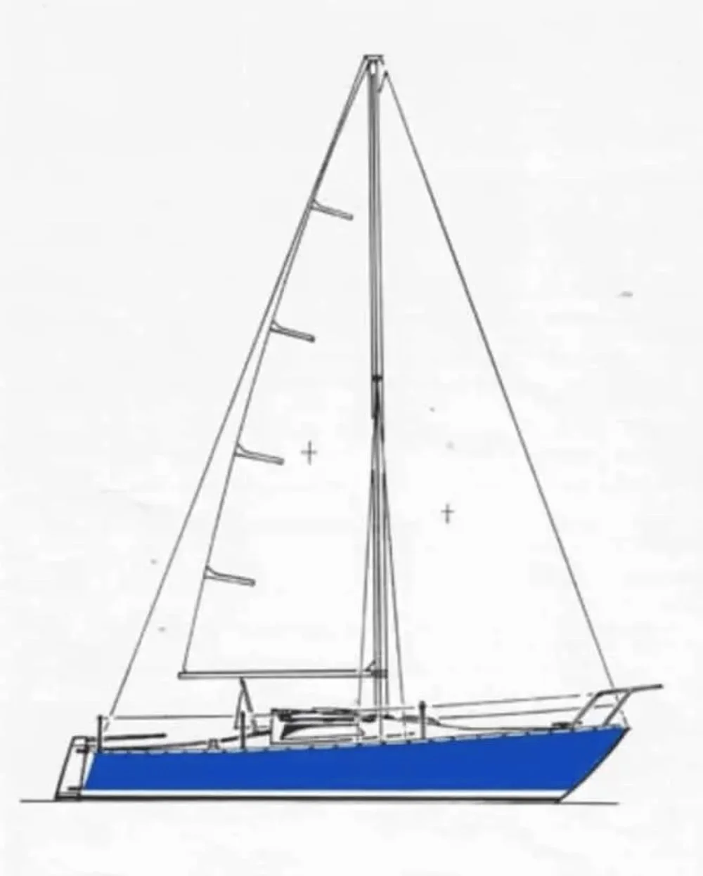 And there she was: Ruffian 23 No 1, just launched and still being rigged. This wouldn't be a test sail. This would be a maiden voyage. But there was now more sunshine between the squalls, and she looked great, a proper miniature offshore racing yacht just asking to be sailed, a big-hearted little boat.